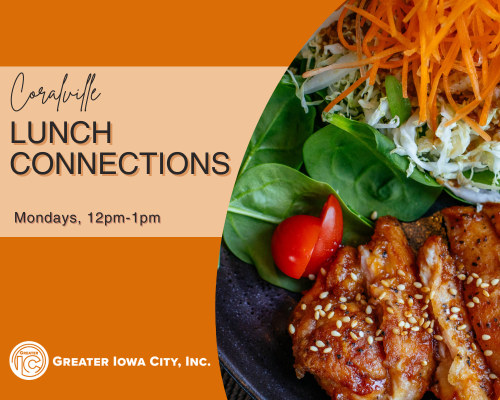 Our Coralville Lunch Connections are the place to see and be seen in the Coralville community! This is an informal networking opportunity for our current and future members of Greater Iowa City, Inc. Join us for lunch, conversation, and connections! Registration is required so that we can provide the host restaurant accurate numbers.